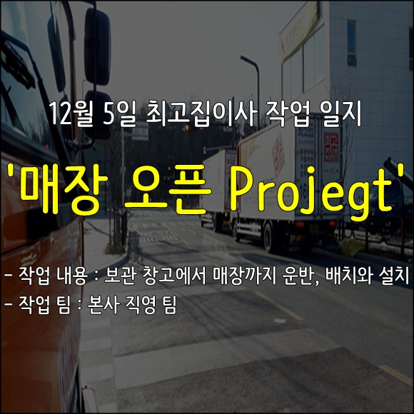 | ÃÖ°íÁýÀÌ»ç 12¿ù 5ÀÏ ¸ÅÀå ¿ÀÇ ÇÁ·ÎÁ§Æ®! |